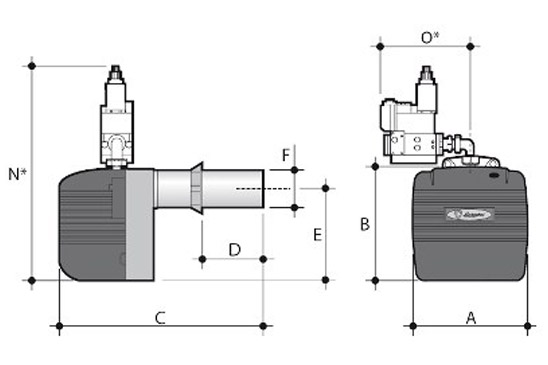 - Single-stage burners (Em) and single-stage burners with long nozzle distributor (Em L).
